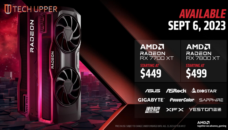 กราฟิกการ์ด AMD Radeon RX 7800 XT ราคา $499 หรือ 17,544 บาท และ AMD Radeon RX 7700 XT ราคา $449 หรือ 15,786 บาท จะวางจำหน่ายตั้งแต่วันที่ กันยายน 2566 ผ่านทางพันธมิตรผู้ผลิตชั้นนำของเรา ประกอบด้วย ASRock, ASUS, Biostar, Gigabyte, PowerColor, Sapphire, Vastamor, XFX และ Yeston นอกจากนี้ กราฟิกการ์ด AMD Radeon RX 7800 XT จะวางจำหน่ายผ่านทางเว็บไซต์ AMD.com ตั้งแต่วันที่ กันยายน 2566 เช่นกัน