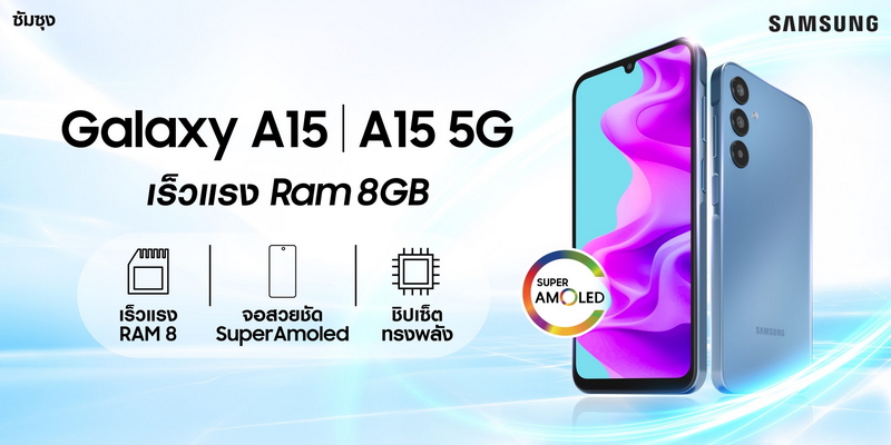 Samsung Galaxy A15 Series เริ่มต้น 6,999 บาท และ Galaxy A25 5G ราคา 10,999 บาท วางจำหน่ายแล้ว