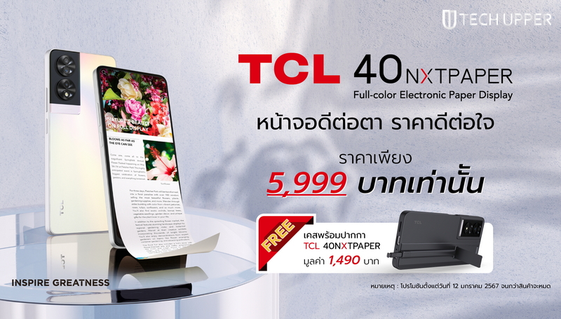 - TCL 40NXTPAPER ราคาเพียง 5,999.- พร้อมรับฟรี เคสซิลิโคนกันกระแทกและปากกาสไตลัส T-Pen มูลค่า 1,490.- ฟรีทันที