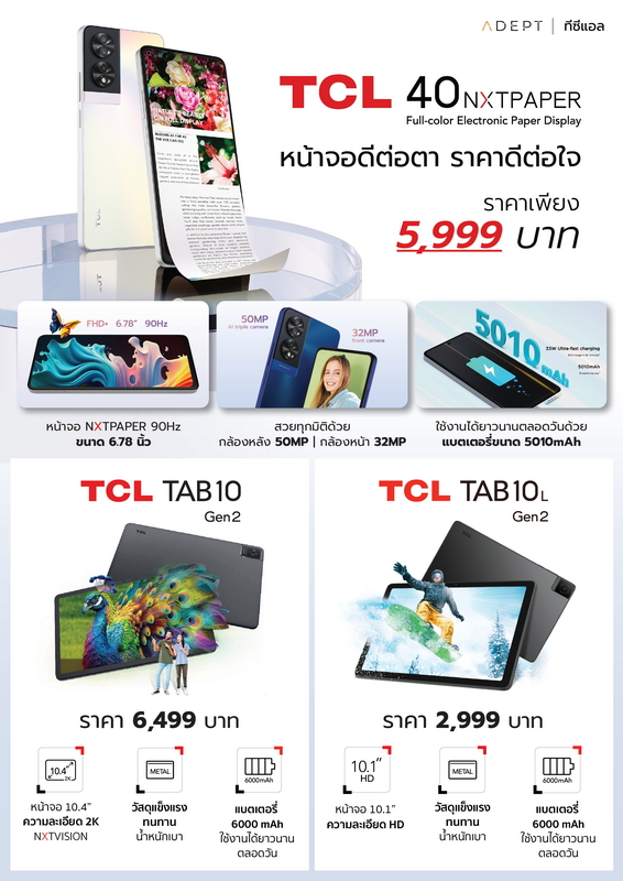 เปิดตัว TCL 40NXTPAPER สมาร์ทโฟนถนอมสายตาเจ้าแรก และ TCL Tab10 LTE Gen2, TCL Tab10L Gen2, TCL Tab8