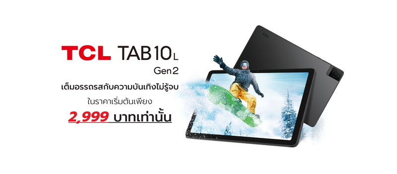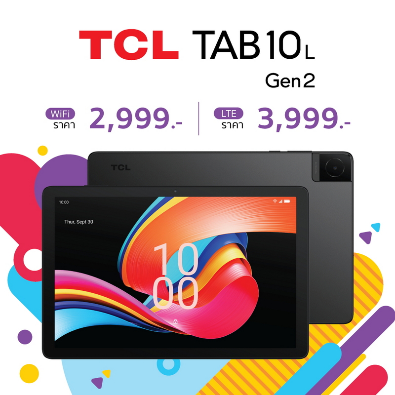 - TCL Tab10L Gen 2 เปิดตัวในราคาเพียง 2,999.- สำหรับรุ่น Wifi และราคา 3,999.- สำหรับรุ่น LTE