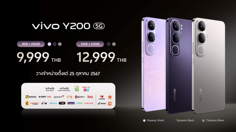 vivo Y200 5G เปิดตัวพร้อมท้าทายทุกชาเลนจ์และให้ผู้ที่สนใจจับจองเป็นเจ้าของได้แล้ววันนี้ ใน 2 รุ่นความจุ ได้แก่ 8GB+256GB ในราคา 9,999 บาท และ 12GB+512GB ในราคา 12,999 บาท