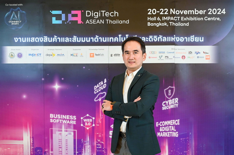 คุณฉัตรชัย คุณปิติลักษณ์ รองผู้อำนวยการใหญ่ สำนักงานส่งเสริมเศรษฐกิจดิจิทัล (depa) กล่าวว่า ในยุคปัจจุบันทุกธุรกิจต้องปรับตัวและนำเทคโนโลยีมาประยุกต์ใช้เพื่อพัฒนาและเพิ่มศักยภาพการดำเนินงานของตัวเอง ซึ่ง depa มีการส่งเสริมและสนับสนุนให้ผู้ประกอบการประยุกต์ใช้เทคโนโลยีดิจิทัลผ่านมาตรการสนับสนุนต่างๆ เพื่อยกระดับและพัฒนาธุรกิจไปสู่ความได้เปรียบทางการแข่งขันในรูปแบบใหม่ในระยะยาว โดยงาน DigiTech ASEAN Thailand 2024 & AI Connect 2024 เป็นงานที่จะตอบทุกความต้องการทางเทคโนโลยีของธุรกิจ จึงเป็นงานที่ไม่ควรพลาดด้วยประการทั้งปวง