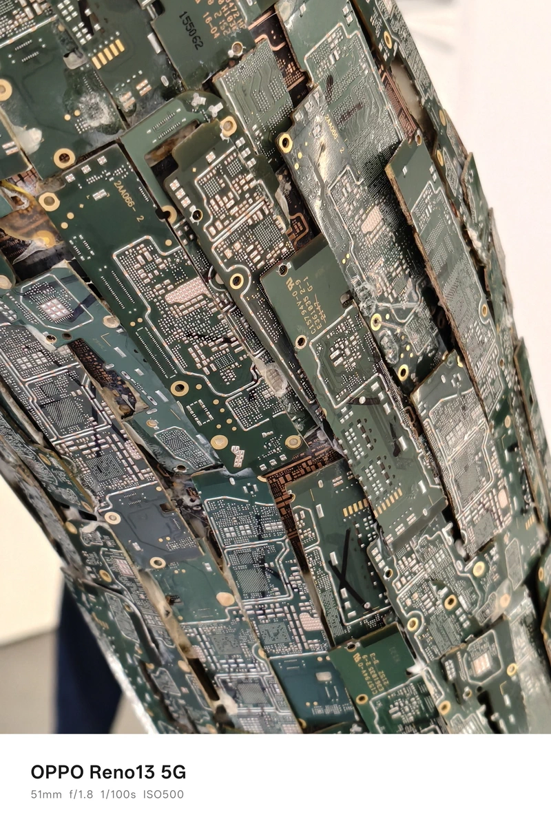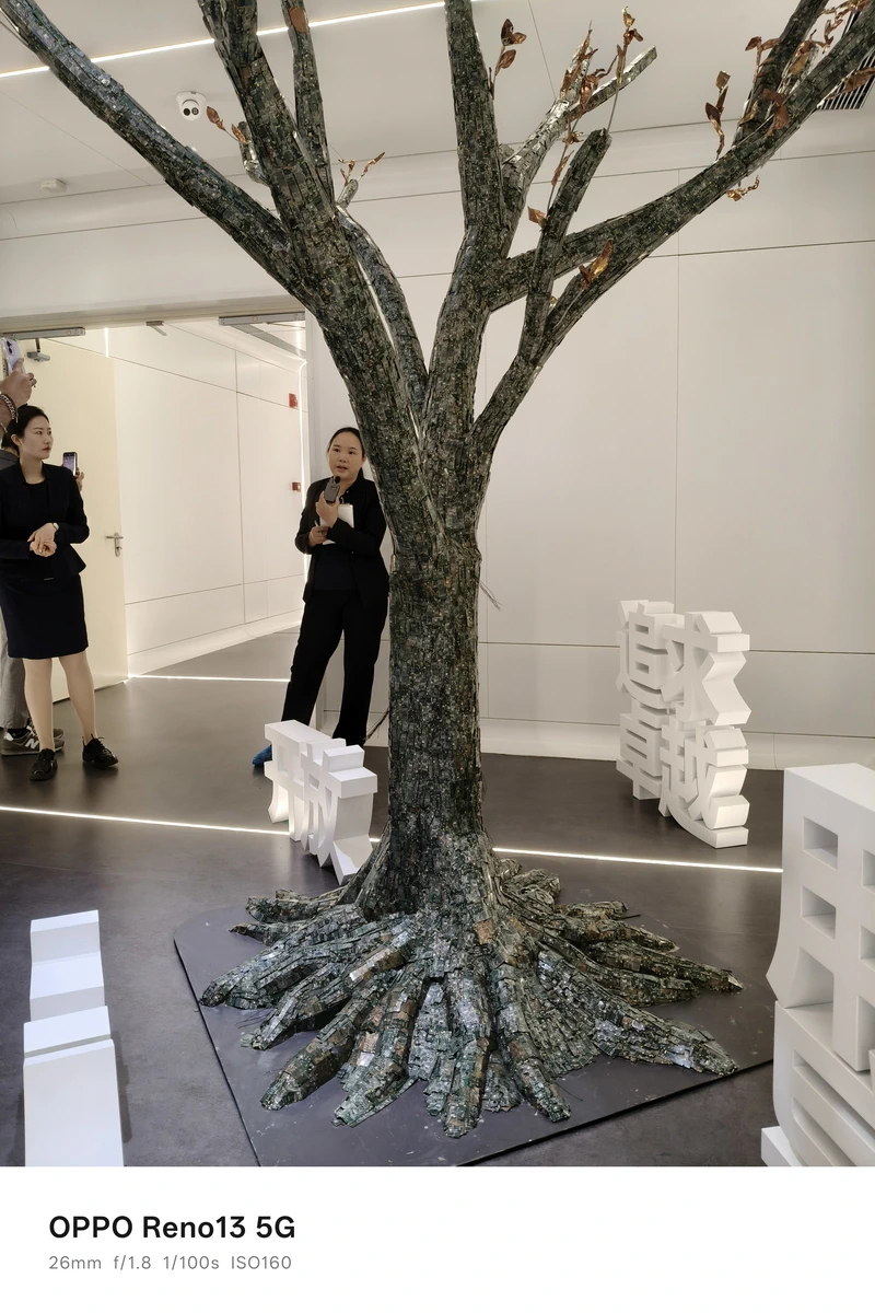 ต้นไม้เทคโนโลยีที่ทำขึ้นจากเศษวัสดุแผงวงจรหลัก (PCB) ของโทรศัพท์มือถือ โดยใช้การติดด้วยมือ กิ่งก้านและใบของต้นไม้ รวมถึงรากของต้นไม้ ล้วนทำ ทำ มาจากชิ้นส่วนของโทรศัพท์มือถือ ไม่เพียงแต่เป็นงานศิลปะเท่านั้น แต่ยังเป็นการปฏิบัติจริงของแนวคิดด้านสิ่งแวดล้อมสีเขียว OPPO มุ่งมั่นในการหลอมรวมแนวคิดการพัฒนาอย่างยั่งยืนเข้าไว้ในกระบวนการจัดการผลิตภัณฑ์ตลอดวงจรชีวิตทั้งหมด และสร้างผลิตภัณฑ์สีเขียวอย่างครบถ้วน OPPO ให้คำมั่นว่าจะบรรลุความเป็นกลางทางคาร์บอนในการดำเนินงานของตนภายในปี 2050 และได้กำหนดเส้นทางการพัฒนาที่ปล่อยคาร์บอนต่ำ