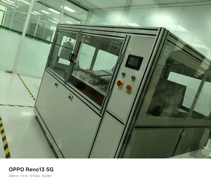 โทรศัพท์มือถือประกอบด้วย 4 ส่วนหลัก ได้แก่ หน้าจอ กรอบกลาง แบตเตอรี่ และฝาหลัง ตอนนี้ตำแหน่งที่เราอยู่คือจุดที่ดำ ดำ เนินการติดตั้งหน้าจอแบบอัตโนมัติและขั้นตอนการกดหน้าจอให้แนบสนิท อุปกรณ์ติดตั้งหน้าจอแบบอัตโนมัติเมื่อเทียบกับการติดตั้งด้วยมือ ช่วยเพิ่มความแม่นยำและความสม่ำเสมอของการติดตั้งหน้าจอ อัตราความคลาดเคลื่อน เช่น การติดตั้งเอียง ลดลงเหลือ 0.3% หน้าจอที่ใช้ในรุ่นต่าง ๆ ของโรงงานฉงชิ่งในปัจจุบัน ส่วนใหญ่เป็นของ BOE