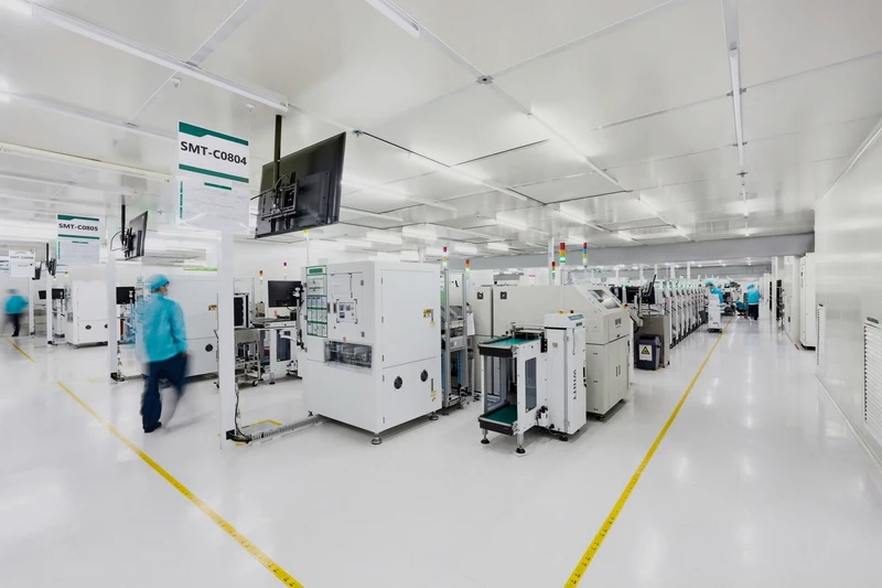 สายการผลิตของทั้งโรงงานประกอบด้วยส่วนของการติดตั้งชิ้นส่วน ทดสอบ และการจ่ายกาวและติดตั้งวัสดุเสริม ใช้การออกแบบสายการผลิตแบบเส้นเดียวต่อเนื่อง ยาวกว่า 70 เมตร ตั้งแต่ต้นจนจบไม่มีจุดขาด ทำให้การผลิตไหลลื่นตั้งแต่ชิ้นส่วนขนาดเล็กไปจนถึงเมนบอร์ดที่มีความซับซ้อนสูง ระดับอัตโนมัติของโรงงานอยู่ที่ประมาณ 90% – 95% จำนวนแรงงานต่อสายลดลงจากเดิม 11 คน เหลือเพียง 6 คน ความสามารถด้านการผลิตโดยรวมอยู่ในระดับแนวหน้าของอุตสาหกรรม