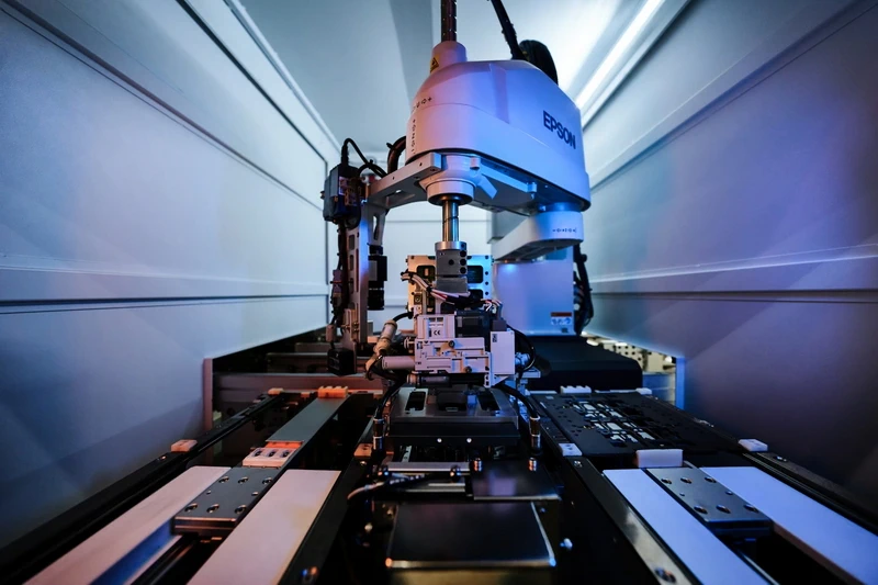 - ขั้นตอนการผลิต โดยใช้ความแม่นยำระดับไมโครเมตรในการประกอบชิ้นส่วนอิเล็กทรอนิกส์นับพันชิ้น โดยมีถึง 128 ขั้นตอนหลักในการผลิต
