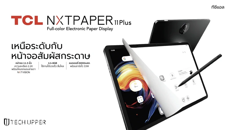 บริษัท เอเดพท์ จำกัด ผู้นำเข้าและจัดจำหน่ายสมาร์ทโฟน สมาร์ทดีไวซ์ และตัวแทนอย่างเป็นทางการของแบรนด์ TCL Mobile ผู้นำด้านเทคโนโลยีหน้าจอและอุปกรณ์เชื่อมต่อ ได้เปิดตัว TCL NXTPAPER 11 Plus แท็บเล็ตหน้าจอขนาด 11 นิ้ว ความละเอียด 2.2K ให้รีเฟรชเรตสูงสุดได้ถึง 120Hz มาพร้อมกับการติดตั้งเทคโนโลยีการถนอมสายตาใหม่ล่าสุด NXTPAPER 4.0 อย่างเต็มรูปแบบ เป็นผลิตภัณฑ์แรกของแบรนด์ ที่ช่วยลดความเมื่อยล้าของดวงตาจากการใช้สายตามองหน้าจอเป็นเวลานาน เสริมด้วย ฟีเจอร์ AI อัจฉริยะ ที่ช่วยยกระดับการใช้งานให้มีประสิทธิภาพมากยิ่งขึ้น อีกทั้งหน้าจอที่ให้สัมผัสเสมือนกระดาษ รองรับการวาดและเขียนได้ดียิ่งขึ้นเมื่อใช้งานคู่กับปากกา TCL T-Pen Stylus (มูลค่า 1,490 บาท) ที่จะแถมฟรีให้จนกว่าจะหมด พร้อมกับเคส Flip Cover (มูลค่า 590 บาท) เมื่อซื้อ TCL NXTPAPER 11 Plus ในราคา 9,990 บาท