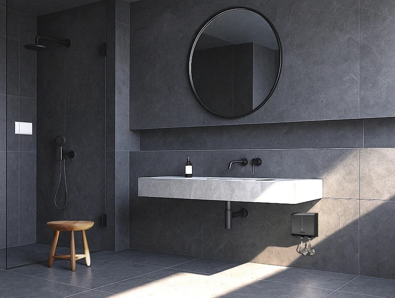 ครั้งแรกของสตีเบล เอลทรอน กับการออกแบบเครื่องทำน้ำร้อนสีไทเทเนียม ที่ให้ลุคพรีเมียมและทันสมัย โดยตัวเครื่องยังมาพร้อมไฟ LED สีขาวแสดงสถานะการทำงาน ทำให้เข้ากับการตกแต่งหลากหลาย ตั้งแต่เรียบหรูแบบ Quiet Luxury ไปจนถึงสไตล์ Industrial Loft โชว์พื้นผิวปูนดิบที่กำลังได้รับความนิยม และด้วยขนาดเครื่องเพียง 20 เซนติเมตร จึงสามารถติดตั้งใต้อ่างล้างมือได้อย่างลงตัว เพื่อการจ่ายน้ำร้อนได้พร้อมกันหลายจุดในห้องน้ำ ไม่ว่าจะเป็นอ่างล้างหน้า อ่างอาบน้ำ หรือฝักบัว โดยไม่ลดทอนความสวยงามของการตกแต่งองค์รวม