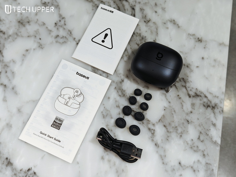Baseus Bass BP1 Pro มาในกล่องที่ดูดีมากเลยนะครับ ในกล่องจะมาพร้อม ตัวหูฟัง Baseus Bass BP1 Pro, จุกยางหูฟังให้เปลี่ยนอีก 4 ขนาด (รวมที่อยู่บนหูฟังเอาเป็นว่าให้มามากถึง 5 คู่เลยทีเดียวครับ), สาย USB-C และเอกสาร