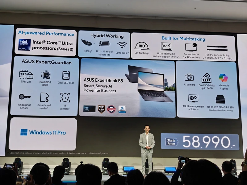 - ASUS ExpertBook B5 (B5405CCA) ออกแบบมาสำหรับองค์กรขนาดใหญ่ มีฟีเจอร์ความปลอดภัยขั้นสูง ปรับแต่งได้ และรองรับการใช้งานในปริมาณมาก 58,990 บาท