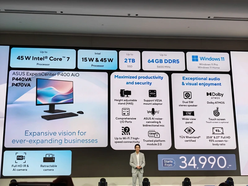 - ASUS ExpertCenter All-in-One (P400VA) โซลูชัน All-in-One ที่ผสานดีไซน์สวยงามกับประสิทธิภาพสูง ประหยัดพื้นที่โดยไม่ลดทอนประสิทธิภาพการใช้งาน เริ่มต้นเพียง 31,990 บาท