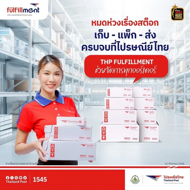 ดร.ดนันท์ กล่าวเสริมว่า นอกจากแพ็คเกจราคาที่ถูกออกแบบเฉพาะผู้ประกอบการแต่ละคน ไปรษณีย์ไทยยังได้สอดแทรกบริการเสริมเพื่ออำนวยความสะดวกให้แก่ภาคธุรกิจที่มีปริมาณพัสดุจำนวนมาก อาทิ บริการเข้ารับฝากสิ่งของถึงที่ (Pick-up Service) และบริการเก็บเงินปลายทาง (COD) พร้อมทั้งพัฒนาโซลูชันสำหรับกลุ่มสินค้าที่ต้องการการดูแลเป็นพิเศษ เช่น ผลไม้เปลือกบาง และสินค้ามูลค่าสูง ให้สามารถ ส่งด่วนของมีมูลค่าได้อย่างสบายใจในวงเงินการคุ้มครองสูงสุด 50,000 บาท อีกทั้งยังมีบริการคลังสินค้าครบวงจร “THP Fulfillment เก็บ แพ็ก ส่ง” เพื่ออำนวยความสะดวกแก่ผู้ประกอบการในการประหยัดเวลาจัดการรออเดอร์ ทีมงานผู้เชี่ยวชาญให้คำปรึกษาและคำแนะนำด้านการขนส่ง-โลจิสติกส์แก่ผู้ประกอบการ โดยร่วมกันหาโซลูชันการจัดส่งที่คุ้มค่าเพื่อให้ได้ประสิทธิภาพและความพึงพอใจสูงสุด
