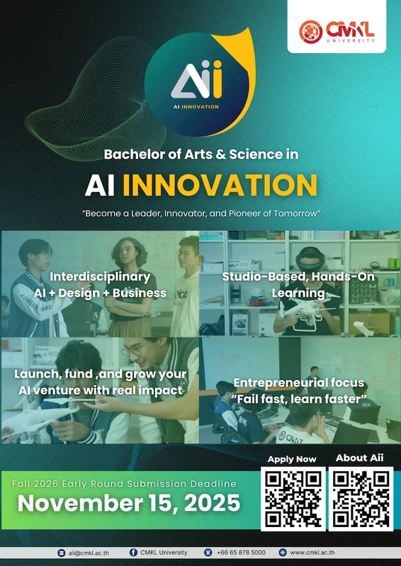 ไฮไลต์ของงานคือการเปิดตัวหลักสูตรปริญญาตรีใหม่ล่าสุด AI Innovation (Aii) อย่างเป็นทางการ หลักสูตรปริญญาตรี 4 ปี ที่จะเปลี่ยนทุกคนจากการเป็นแค่ “ผู้ใช้ AI” ให้กลายเป็น “ผู้สร้างนวัตกรรม AI” ตัวจริง โดยผู้เข้าร่วมได้ทำความรู้จักคณาจารย์และผลงานนวัตกรรมจากนักศึกษาที่สะท้อนคุณภาพของ CMKL ในฐานะ “Top AI School in Thailand” กันแบบเจาะลึก พร้อมสัมผัสการสาธิตโปรเจกต์ต้นแบบและบทสนทนากับอาจารย์ผู้พัฒนาหลักสูตร ที่ชี้ให้เห็นว่าหลักสูตรนี้คือคำตอบสำหรับผู้เรียนที่อยากก้าวสู่สนามจริงของอุตสาหกรรม AI