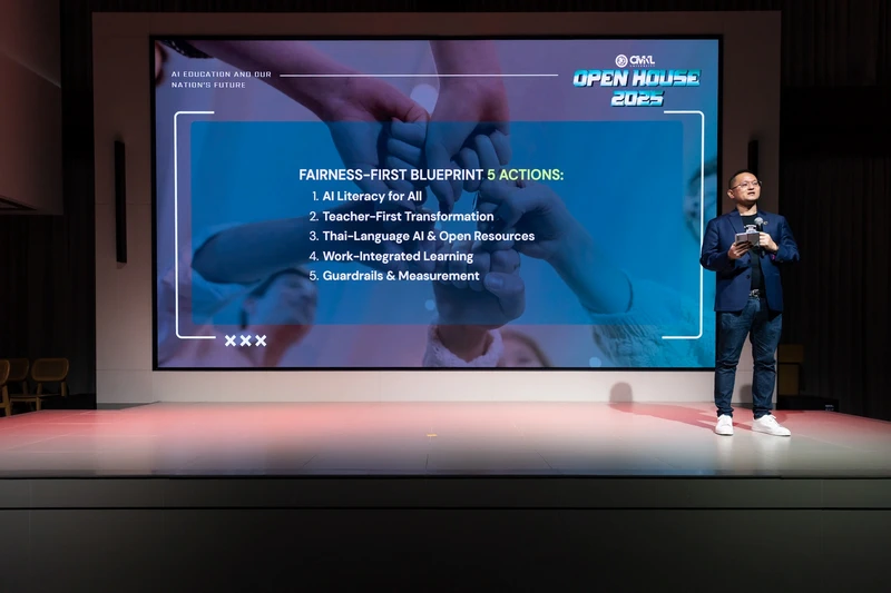 มหาวิทยาลัยซีเอ็มเคแอล (CMKL) มหาวิทยาลัยชั้นนำด้าน AI ของประเทศไทย ซึ่งก่อตั้งขึ้นจากความร่วมมือระดับโลกของ Carnegie Mellon University (CMU) สหรัฐอเมริกา และ สถาบันเทคโนโลยีพระจอมเกล้าเจ้าคุณทหารลาดกระบัง (KMITL) จัดงาน CMKL Open House 2025 – Ready Player AI: Your Mission, Lead the Future of Intelligence พร้อมจุดประกายปรากฏการณ์ครั้งสำคัญ เปิดตัวหลักสูตรใหม่ AI Innovation (Aii) ผสาน AI + Business + Design ปั้นบัณฑิตนักนวัตกรรมที่พร้อมขับเคลื่อนเศรษฐกิจและสังคม ตอกย้ำบทบาท CMKL ในการเป็นผู้นำด้านการศึกษา AI ระดับโลก