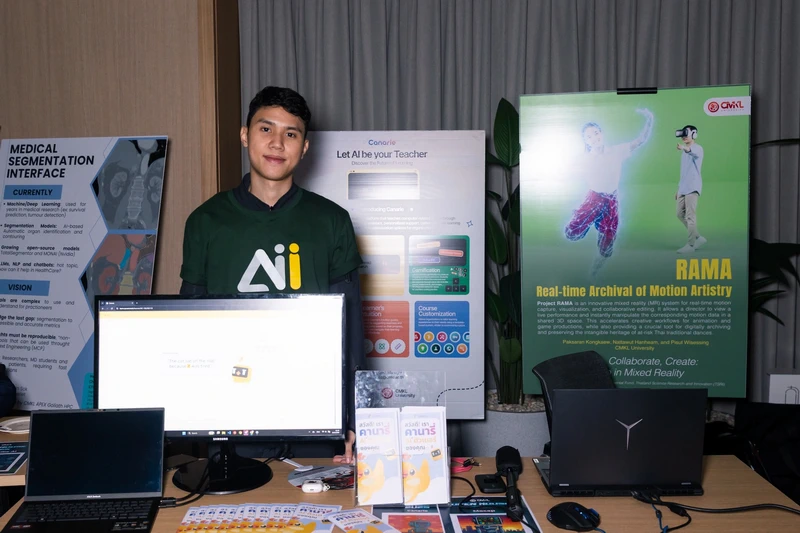บรรยากาศในงานเต็มไปด้วยความตื่นเต้นและพลังของคนรุ่นใหม่ที่สนใจเทคโนโลยี AI ผู้เข้าร่วมได้สัมผัสความล้ำของ AI ในทุกรายละเอียด กับการบรรยายพิเศษจากผู้บริหารและคณาจารย์ CMKL เกี่ยวกับอนาคตของการศึกษา AI และการเสวนากับผู้บริหารระดับโลกจาก NVIDIA และ AWS ที่มาร่วมแลกเปลี่ยนวิสัยทัศน์ในการสร้างบุคลากรระดับนานาชาติให้กับอุตสาหกรรมเทคโนโลยี ภายใต้หัวข้อ Building World-Class Talent for a World-Leading Tech Industry