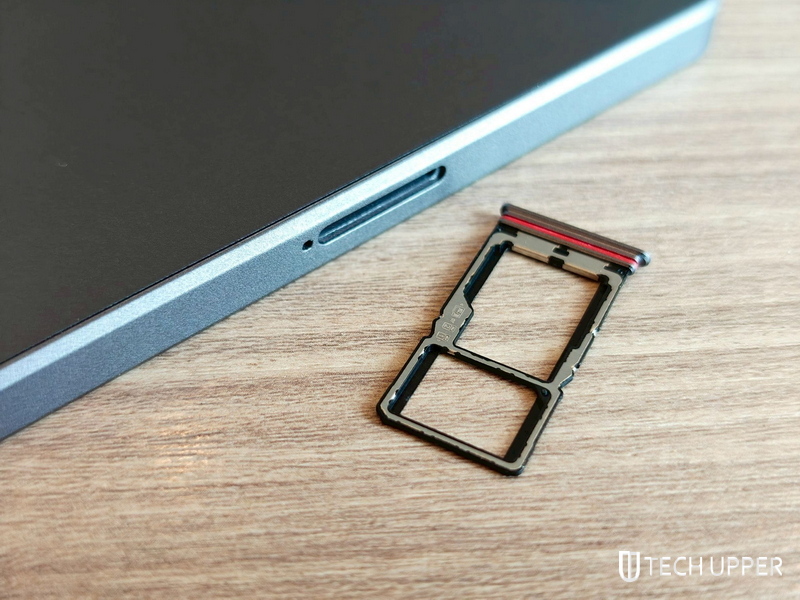 ด้านซ้ายมีลำโพง และช่องใส่ซิมซึ่งรองรับ 2 ซิม รวมทั้ง MicroSD Card