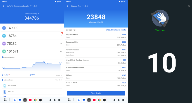 • ทดสอบด้วยแอปพลิเคชั่น AnTuTu Benchmark ทำไปได้ 344,786 คะแนน