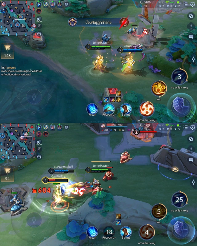 Alldocube iPlay 70 เล่นเกมได้ดีเลยนะครับ ผมเล่น ROV ได้อย่างลื่นไหล ค่าเฟรมเรทจะอยู่ที่ 57FPS – 60FPS และการทัชหน้าจอลื่นไหลติดนิ้วดีมาก
