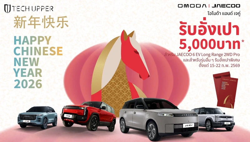 OMODA & JAECOO ผู้นำด้านนวัตกรรมยานยนต์พลังงานไฟฟ้าระดับพรีเมียม ขอเป็นส่วนหนึ่งในการส่งมอบความสุขเฉลิมฉลองเทศกาลตรุษจีน พร้อมมอบสิทธิพิเศษต้อนรับปีใหม่ เพื่อเป็นจุดเริ่มต้นแห่งความสุข ความมั่งคั่ง และความสำเร็จไปด้วยกัน