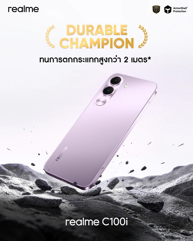 realme C100i เปิดราคา 4,999 บาท มาพร้อมแบต 7000mAh และโครงสร้าง ArmorShell ทนทานระดับกองทัพ ตอบโจทย์การใช้งานคุ้มค่าเกินราคา