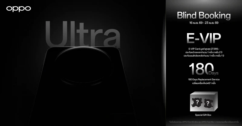 สามารถติดตามรายละเอียดเพิ่มเติม และเตรียมสัมผัสพลังความอัลตราครั้งแรกของประเทศไทยของ OPPO Find X9 Ultra และ OPPO Find X9s ไปพร้อมกันได้ในวันที่ 23 เมษายน 2569 เวลา 16.00 น. เป็นต้นไป ทาง Facebook, YouTube และ TikTok ของ OPPO Thailand เท่านั้น https://www.facebook.com/oppothai