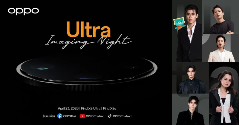 ออปโป้ ประเทศไทย ผู้นำตลาดสมาร์ตโฟน เตรียมเปิดตัวสมาร์ตโฟนรุ่นใหม่ล่าสุด ชวนสัมผัสประสบการณ์การถ่ายภาพระดับมืออาชีพนี้ได้ในงาน “Ultra Imaging Night OPPO Find X9 Ultra | OPPO Find X9s” โดยภายในงานยังยกทัพนวัตกรรมรุ่นใหม่ล่าสุด นำโดย OPPO Find X9 Ultra และ OPPO Find X9s พร้อมด้วย OPPO Enco Clip2, OPPO Enco Air5 Pro และ OPPO Watch X3 อุปกรณ์อัจฉริยะที่เติมเต็มประสบการณ์ทั้งด้านความบันเทิง และสุขภาพอย่างครบถ้วน