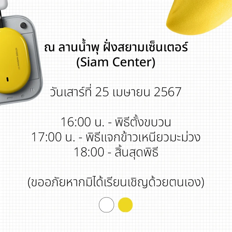โดย Siam Center จะถูกเนรมิตพื้นที่ให้กลายเป็นแลนด์มาร์กสีเหลืองแห่งการเฉลิมฉลองแบบสมฐานะ พร้อมเพิ่มความป่วนด้วยการยก ร้านเจ๊เตียง ข้าวเหนียวมะม่วงชื่อดัง มาไว้กลางงาน และแจกข้าวเหนียวมะม่วงให้แขก 200 คนแรกที่มาร่วมเป็นสักขีพยานของ “การลงเรือลำเดียวกัน” ในครั้งนี้ เพื่อเป็นการขอบคุณทุกคนที่ช่วยส่งแรงเชียร์จน Nothing Thailand จีบ MILLI ได้สำเร็จ