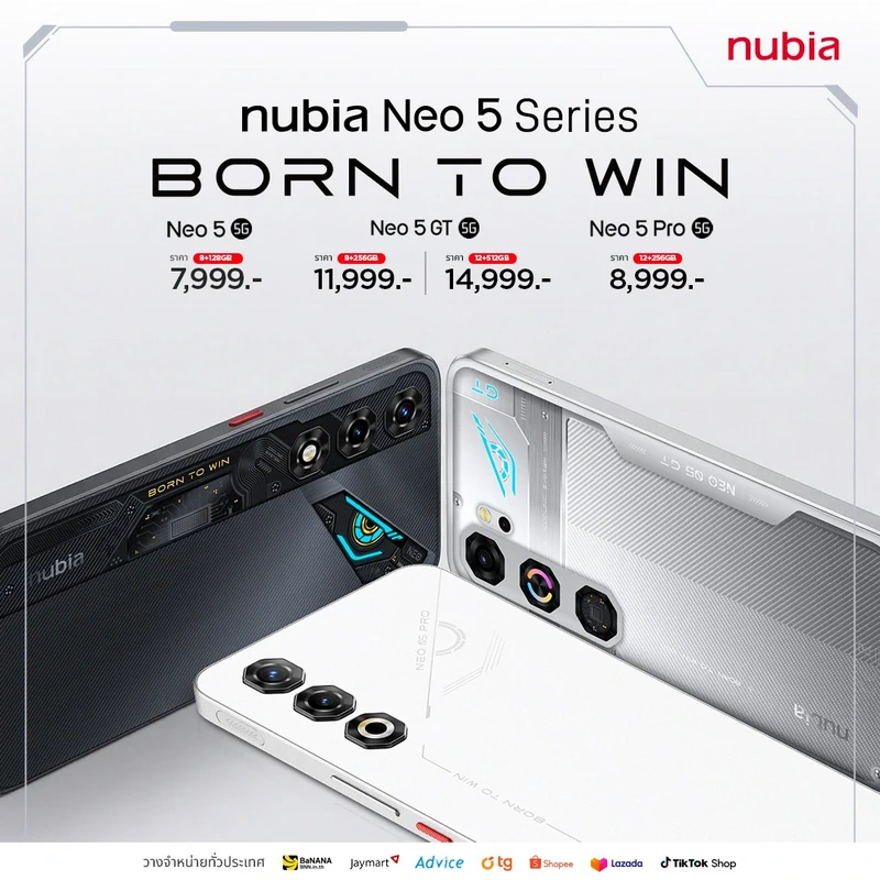 nubia เดินหน้ารุกตลาดเกมมิ่งสมาร์ตโฟนอย่างต่อเนื่อง เปิดตัว nubia Neo 5 Series ที่มาพร้อมคอนเซ็ปต์ “Born to Win” หรือ “เกิดมาเพื่อคว้าชัยชนะ” อย่างเป็นทางการในประเทศไทย มุ่งยกระดับประสบการณ์การเล่นเกมบนมือถือให้แก่คนรุ่นใหม่ ด้วยเทคโนโลยีระดับแฟลกชิปที่เข้าถึงได้ง่ายขึ้น นำทัพโดยรุ่นไฮไลต์อย่าง nubia Neo 5 GT 5G ที่ได้รับสืบทอด DNA ความแรงจาก REDMAGIC แบรนด์สมาร์ตโฟนเกมมิ่งระดับโลก