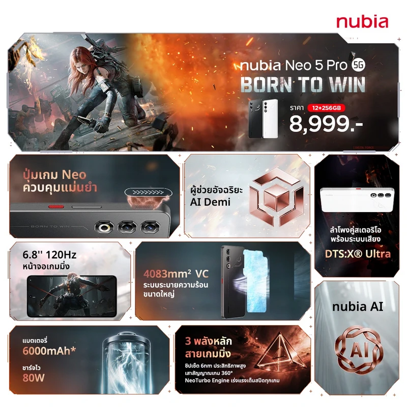 nubia Neo 5 Series ถ่ายทอด DNA สายเลือดผู้ชนะจาก REDMAGIC อัดแน่นพัดลม-Trigger ระดับโปร เริ่มต้น 7,999 บาท